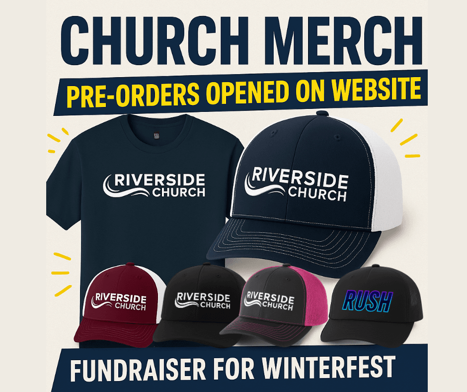 Rep Riverside wherever you go with our first drop: Hats and T-Shirts with our church logo!!